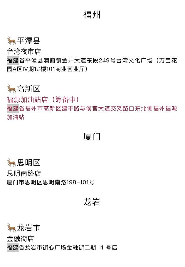目前,鹿角巷官方已经明确给出大陆地区所有正版店地址,小编查询后发现,福州目前已无鹿角巷正版门店(平潭不属于福州市管辖范围)。
